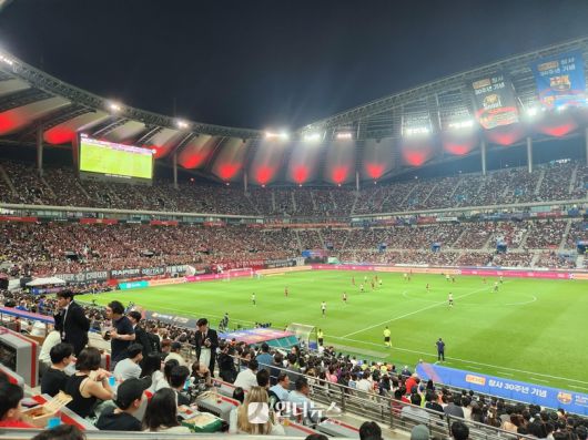팬들은 경기 시작 전 바르셀로나 선수들이 워밍업을 할 때부터 선수들 터치 하나, 손짓 하나에도 열광했습니다. 특히 라민 야말, 레반도프스키 등이 전광판 화면에 잡힐 때면 엄청난 환호성이 연신 귀를 때렸습니다. 이에 뒤질세라 FC서울 서포터즈도 밀리지 않기 위해 연신 목청을 높이며 응원가를 불렀습니다.