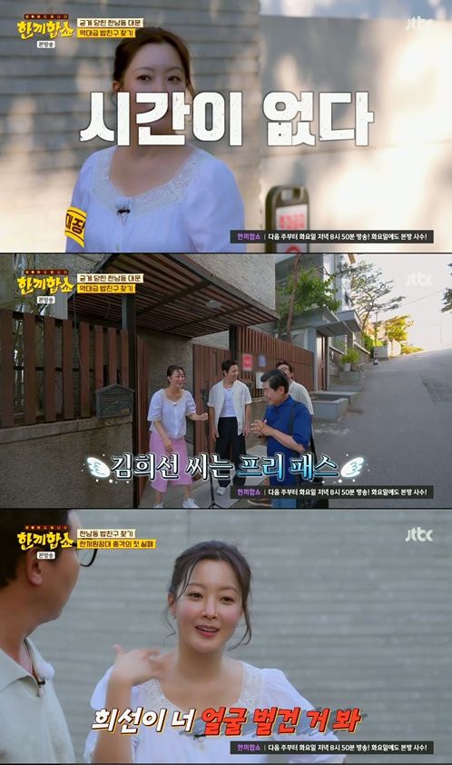 31일 방송된 JTBC ‘한끼합쇼’ 4회에서는 김희선과 탁재훈, 이규형, 이연복 셰프가 한남동에서 역대급 난이도의 ‘한 끼 도전’을 펼쳤다.