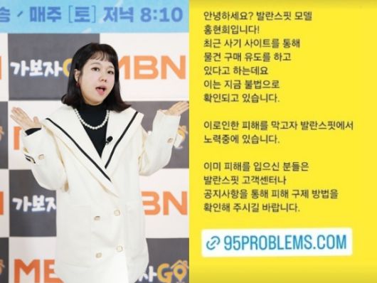 31일 홍현희는 자신의 SNS에 "최근 사기 사이트를 통해 물건 구매를 유도하고 있다고 한다. 이는 현재 불법으로 확인되고 있다"는 글을 게재했다.