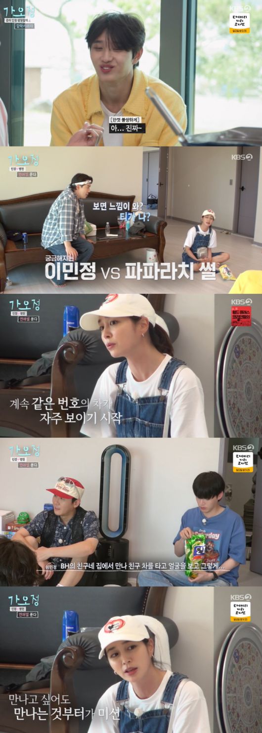 결국 이민정은 "아니 그럼 내가 그냥 걸어갈게. 나 진짜 괜찮다. 재원이가 약간 불만을 품는 거 같다"라 했고 김재원 김정현이 모두 모여 달랬지만 좀처럼 풀어지지 않았다.