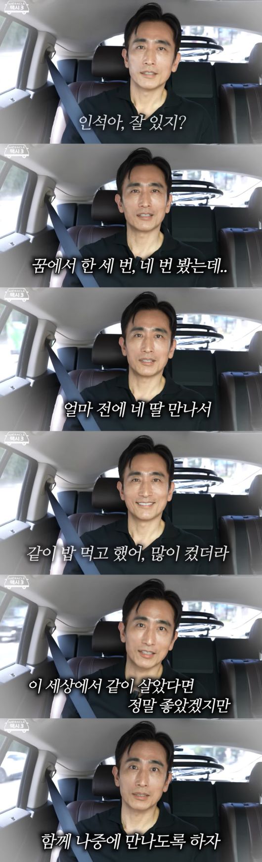 차인표는 "꿈에서 한 세 번, 네 번 봤는데 더 자주 보면 좋은데 하나님 앞에서 편하게 잘 있을 거라고 생각한다"며 말문을 열었다.