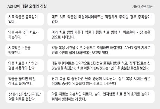 나머지 3분의 2는 치료 속도가 더디다. 사춘기 이후엔 치료에 쉽게 협조하지 않는다. 공존 병리로 인해 자존감이 저하된 상태에선 병원을 거부하기도 한다. 수년간 자녀와 갈등을 반복하다 치료를 접는 경우도 있다. 김 교수는 “이 시기의 치료 경과에 따라 성인 ADHD로 고착될 가능성이 결정되므로 치료를 포기해선 안 된다”라며 “자녀가 좋아하는 웹툰 등으로 설득해 성공적으로 치료를 끝낸 사례가 있다”고 당부했다.