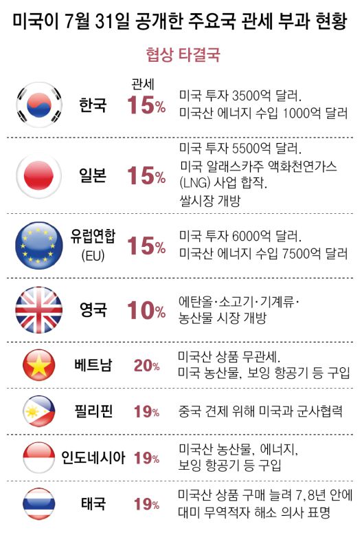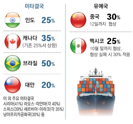 韓-日-EU ‘15% 관세’ 7일 시작… 타결 못한 캐나다 35%-브라질 50%