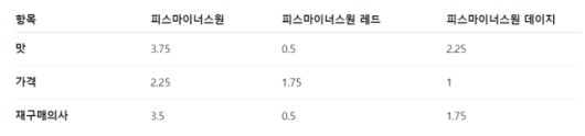 아래는 피스마이너스원 하이볼 1~3탄까지의 별점 평균치(5점 만점).