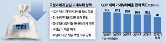 정부가 가계부채 억제 정책을 국정과제로 추진한다. 현재 90%인 국내총생산(GDP) 대비 가계부채 비중을 중장기적으로 80%대까지 낮추면서 자산 건전성을 끌어올린다는 로드맵을 만들었다.