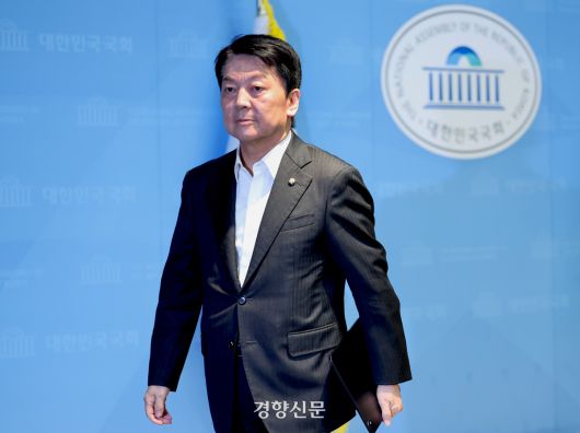 안철수 국민의힘 의원이 지난달 7일 국회 소통관에서 혁신위원장직을 거부하고 당대표 출마를 선언한 후 퇴장하고 있다. 박민규 선임기자 |