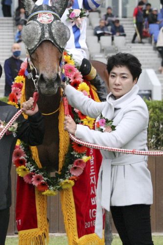 (서울=연합뉴스) 김동찬 기자 = 한국 경마 최초 여성 조교사인 이신우 조교사가 통산 400승 고지에 올랐다.