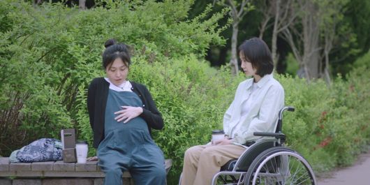 성지혜 감독의 ‘우리 둘 사이에’는 은진이 임신 사실을 알게 된 순간부터 출산에 이르기까지 34주간의 시간을 따라간다. 그 시간 동안 은진은 은진대로, 호선은 호선대로, 누구도 대신할 수 없는 고독한 분투를 이어간다. ‘우리 둘 사이에’ 끼어든 것이 비단 ‘쪼꼬’라는 이름의 태아만이 아니라, 그와 함께 따라온 온갖 난관들이기 때문이다.