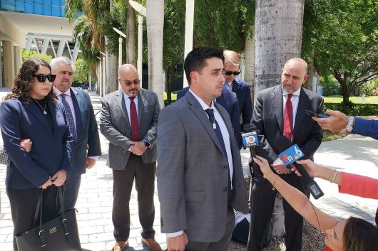테슬라의 운전자 보조 기술인 오토파일럿과 관련된 플로리다 충돌 사고로 중상을 입은 딜런 앵글로가 지난 8월 1일(현지시간) 마이애미 연방 법원 앞에서 기자회견을 하고 있다./AP 연합뉴스 |
