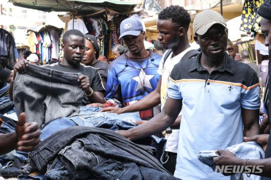 [캄팔라=AP/뉴시스] 2일(현지 시간) CNN에 따르면 나이지리아 경제학자 비스마크 르와네는 "아프리카는 곧바로 중국의 손아귀에 들어가게 될 것"이라며 "이것은 불행한 결과"라고 평가했다. 사진은 2023년 우간다 캄팔라의 오위노 시장에서 사람들이 중고 의류를 사고 있는 모습. 2025.08.02. |