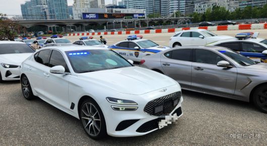 경기 성남시 분당구 고속도로순찰대 앞에서 단속 준비 중인 암행순찰차. 이영기 기자. |