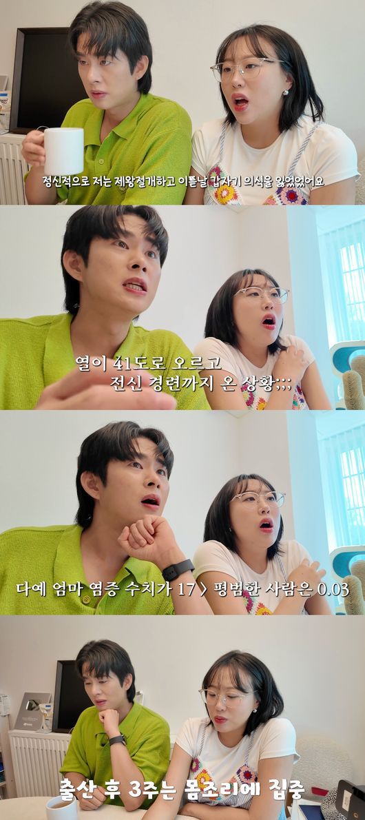 [OSEN=지민경 기자] 방송인 박수홍의 아내 김다예가 출산 후 열이 41도까지 올랐던 경험을 공개했다.