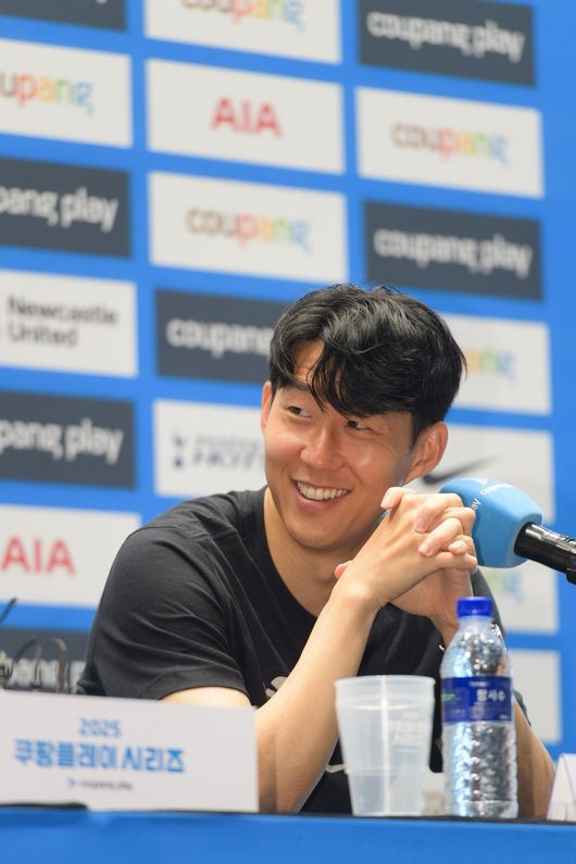 손흥민(33, 토트넘)은 2일 오전 10시 서울시 영등포구 국제금융로 IFC에서 열린 2025 쿠팡플레이 시리즈 뉴캐슬 유나이티드전을 앞둔 토트넘 홋스퍼 공식 기자회견에 토마스 프랭크 감독과 함께 모습을 드러냈다.