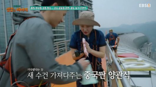 2일 방송된 ENA·EBS1 예능 '추성훈의 밥값은 해야지'(이하 '밥값은 해야지')에서는 '밥값즈' 추성훈, 이은지, 곽준빈이 중국 충칭의 고층 빌딩을 청소하는 모습이 그려졌다.