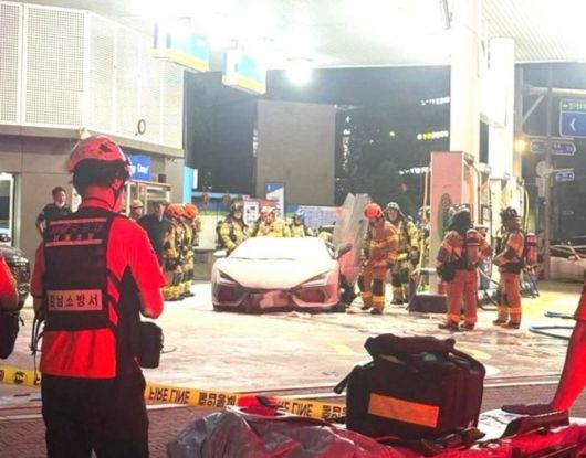 2일 소방 당국 등에 따르면 전날(1일) 오후 8시 54분 강남구 신사동의 한 주유소에서 주유 중이던 람보르기니에서 불이 났다.