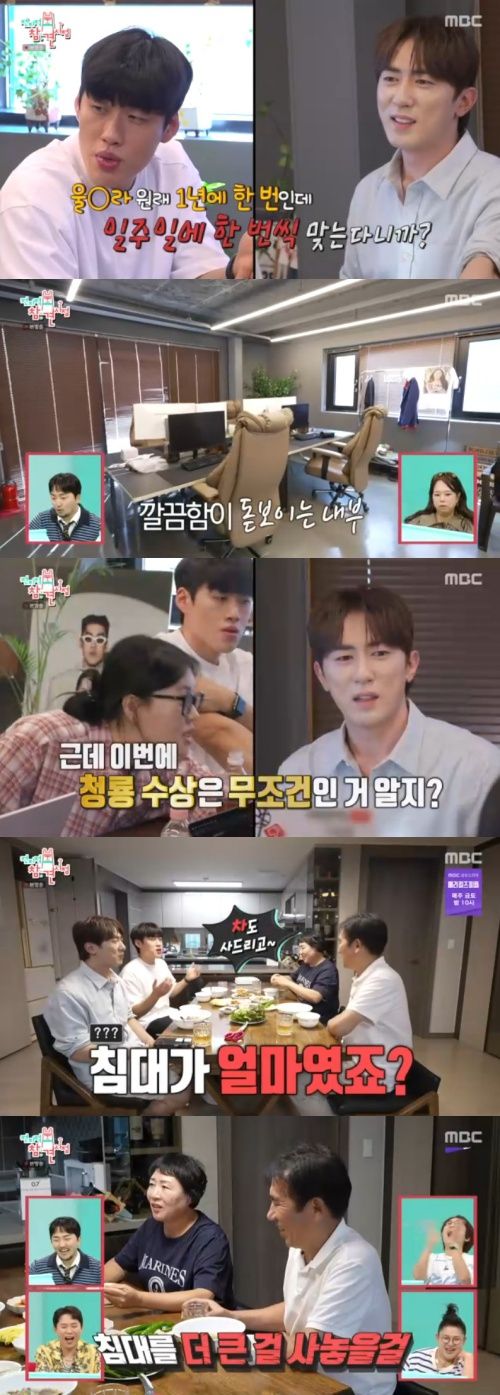 김원훈 아빠는 “너희가 많이도 했어. ‘우낌표’ 그거 되지도 않는 거. 그런데 왜 우리한테 지분 안 주냐?”고 물었다. 이에 진세가 “원훈 선배가 침대 해드렸잖아요”라고 하자 원훈은 “내가 차도 해드렸잖아”라고 했다. 원훈 아빠는 “침대 밑에 천만원 깔아놨잖아”라며 당시를 회상했다. 원훈은 “제가 잘되고 첫 수입으로 해드리고 싶었어요”라며 뿌듯해했다. 이를 듣던 원훈 엄마는 “근데 나는 제일 후회되는 게 뭐냐면 침대를 큰 걸 사놓을걸”이라고 농담해 웃음을 자아냈다.