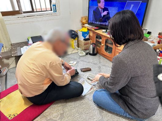 노인 맞춤 돌봄 서비스를 제공 중인 울산 남구의 일선 공무원이 독거노인의 집을 방문한 모습. /울산 남구 제공 |