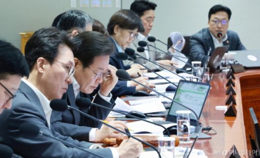 이재명 대통령이 29일 서울 용산 대통령실 청사에서 열린 국무회의에서 중대재해 반복 발생 근절 대책 관련 김병환 금융위원장(사진 오른쪽에서 첫번째)의 발언을 듣고 있다./사진=대통령실통신사진기자단