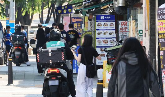 25일 서울 시내 한 음식점 앞에서 배달 라이더가 배달을 준비하고 있다. |