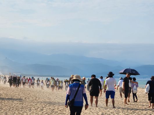 당초 선착순 200명을 대상으로 참가자를 모집했지만 현장 분위기는 이를 훌쩍 넘었다. 관광객들의 자발적인 참여로 최종 참가 인원은 400여 명에 달했다. 먼저 접수한 200명에게는 신발주머니와 타월, 생수, 복숭아 꾸러미 등 기념품이 제공됐고, 이후 도착한 200여 명은 건강한 발걸음과 해풍 속 힐링으로 만족해야 했다.