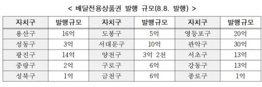 [서울=뉴시스] 배달전용상품권 발행 규모(8.8. 발행). 2025.08.03. (표=서울시 제공) *재판매 및 DB 금지 |