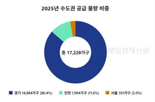 수도권 공급 물량은 1만7229가구로 경기(1만4884가구), 인천(1994가구), 서울(351가구)의 순으로 많다.