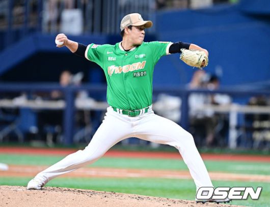 [OSEN=고척, 최규한 기자] 3일 오후 서울 고척스카이돔에서 ‘2025 신한 SOL Bank KBO리그’ 키움 히어로즈와 롯데 자이언츠의 경기가 열렸다. 홈팀 키움은 정세영, 방문팀 롯데는 박세웅을 선발로 내세웠다. 3회초 키움 김선기가 힘차게 공을 뿌리고 있다. 2025.08.03 / dreamer@osen.co.kr
