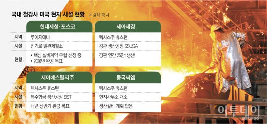 국내 중견 철강사들도 미국 현지에 설비를 마련했다. 세아제강은 미국 텍사스주 휴스턴에 강관 25만t을 생산할 수 있는 공장 세아스틸 USA(SSUSA)를 2016년부터 보유 중이다. 세아베스틸지주는 약 2130억 원을 투입해 같은 텍사스에 특수합금 생산공장을 건설 중이다. 현지법인은 세아슈퍼알로이테크놀로지(SST)다.
