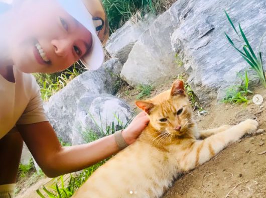 공개된 사진 속 김희애는 러닝 중 만난 고양이와 함께 다정히 셀카를 찍은 모습이 담겼다. 그는 한손으로 치즈색 고양이를 쓰다듬었고, 카메라를 향해 환하게 웃고 있다.