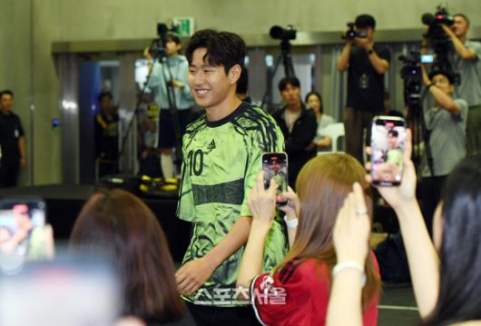 [스포츠서울 | 상암=정다워 기자] 축구대표팀 이강인(파리생제르맹)이 선배 손흥민(토트넘 홋스퍼)을 응원하기 위해 상암을 찾았다.