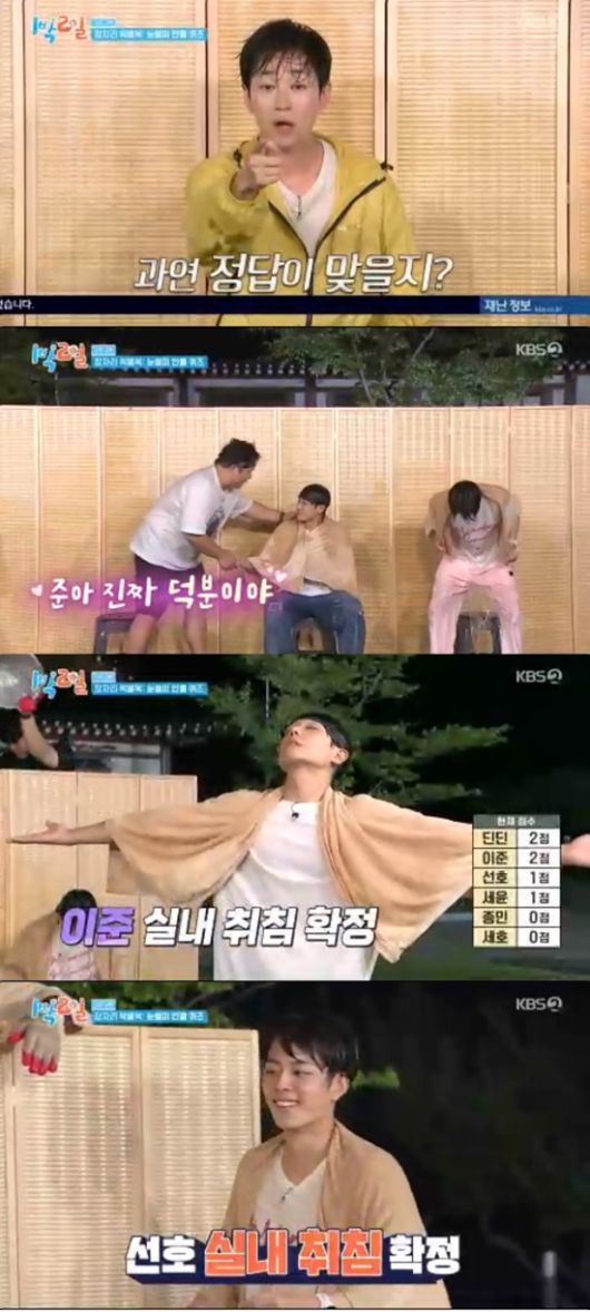 딘딘이 2문제를 맞히며 단독 1위에 등극했지만 이준이 3문제를 맞히면서 가장 먼저 실내취침을 확정지었다.