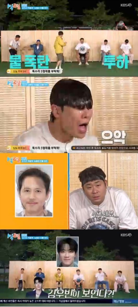 딘딘이 첫 문제를 맞힌 뒤 나머지 멤버들에게 물폭탄이 떨어졌다. 멤버들은 예상보다 훨씬 차가운 얼음장 같은 물에 놀란 모습을 보였다.