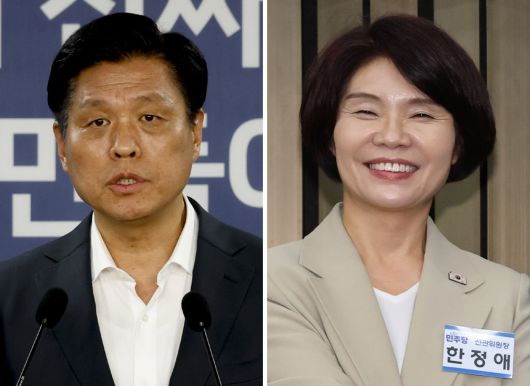 정청래 더불어민주당 신임 대표가 3일 내년 6월 지방선거 전반을 책임질 당 사무총장에 조승래 의원(3선·대전 유성구갑·왼쪽 사진)을 임명했다. 이재명 정부 첫 여당 정책위의장에는 한정애 의원(4선·서울 강서구병·오른쪽)이 임명됐다. 두 사람은 강성 개혁 이미지를 가진 정 대표에 비해 온건하고 중립적인 성향의 인사들로 평가된다.