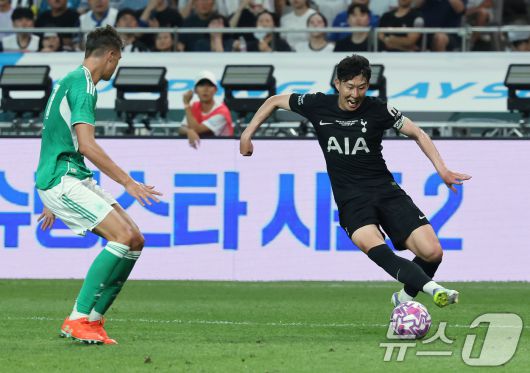3일 오후 서울 상암월드컵경기장에서 열린 쿠팡플레이 시리즈 토트넘 홋스퍼와 뉴캐슬 유나이티드의 경기 후반전, 토트넘 손흥민이 돌파를 시도하고 있다. 2025.8.3/뉴스1 ⓒ News1 장수영 기자 |