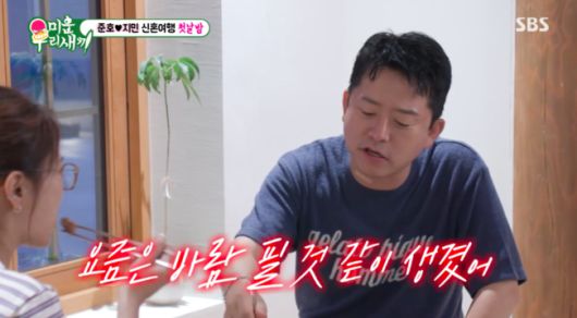 김준호가 기분 좋아하자 김지민은 “약간 불안하다. 너무 잘생겨져서”라고 덧붙였다. 이에 김준호는 “너는 내가 표현을 안했는데 네가 샤워하고 나올 때 아주 그냥 환장하겠더라”라고 화답했다.