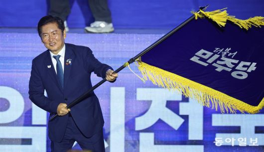 더불어민주당 정청래 신임 당대표가 2일 경기 고양시 킨텍스에서 열린 제2차 임시전국당원대회에서 당기를 흔들고 있다. 정 대표는 수락연설에서 “당이 앞장서서 내란 척결에 총력을 기울이겠다”며 강력한 대야(對野) 공세를 예고했다. 또 검찰·언론·사법 개혁을 위한 태스크포스(TF)를 즉각 구성하고 추석(10월 6일) 전 입법을 마치겠다는 방침을 재확인했다. 이훈구 기자 ufo@donga.com |