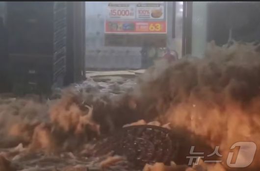 최대 288㎜의 폭우가 내린 3일 전남 무안의 한 도로에서 빗물이 역류해 맨홀 뚜껑이 열리고 있다. (나광국 전남도의원 SNS. 재배포 및 DB 금지) 2025.8.3/뉴스1 |