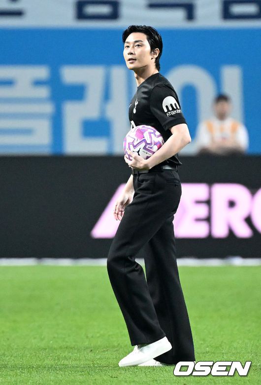 경기에 앞서 시축을 마친 배우 박서준이 경기장을 나가고 있다. 2025.08.03 /sunday@osen.co.kr