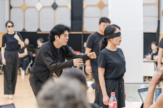 지난달 30일 국립극장 연습실에서 일부 장면이 공개됐다. 짧은 리허설이었지만, 유교적 효 사상에 기초한 전통 '심청가'의 틀을 벗어나려는 연출 의도가 분명히 드러났다. 심봉사 역의 김준수는 맹인 잔치에서 눈을 뜨는 기적의 순간을 기쁨이 아닌 죄책감으로 표현하며, 인물 해석의 방향을 선명히 했다.