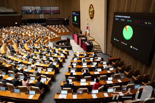 지난달 23일 오후 서울 여의도 국회에서 열린 제427회 국회(임시회) 제2차 본회의에서 농어업재해보험법 일부개정법률안(대안)이 재적 297인, 재석 205인, 찬성 179인, 반대 9인, 기권 17인으로 통과되고 있다. 2025.7.23/뉴스1 ⓒ News1 유승관 기자 |