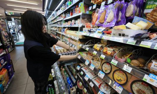 지난달 24일 서울 시내 한 편의점에서 편의점 관계자가 진열된 제품을 정리하고 있다. 뉴스1 |