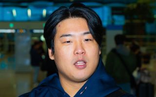 - 출국 전 인터뷰하는 한화 강백호