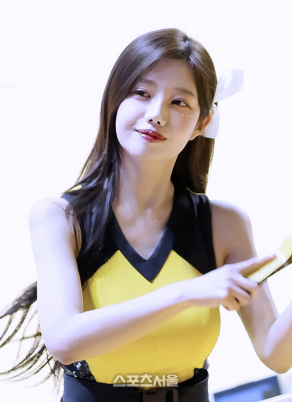 “오늘 우리가 이겼다”...치어리더 강지은, 열띤 응원으로 코트 열기 후끈!