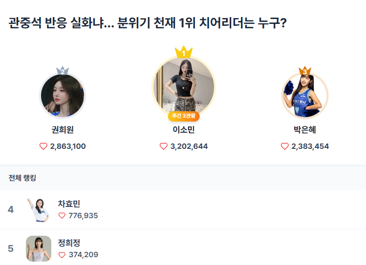 이소민의 인기는 지속된다, 스타트렌드 치어리더 부문 팬심 폭발