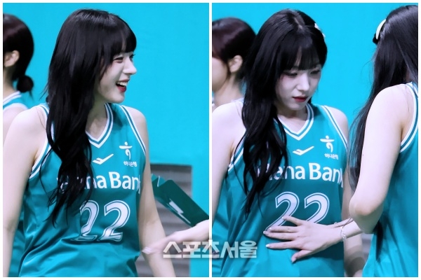 ‘뱃살 제로(?)’라고 우기는 치어리더 하지원...악착같이 확인하는 장난꾸러기 동료들의 장난삼매경