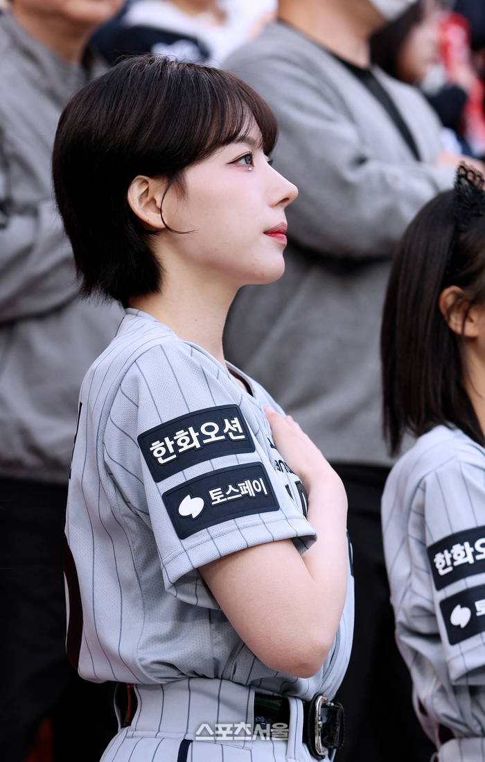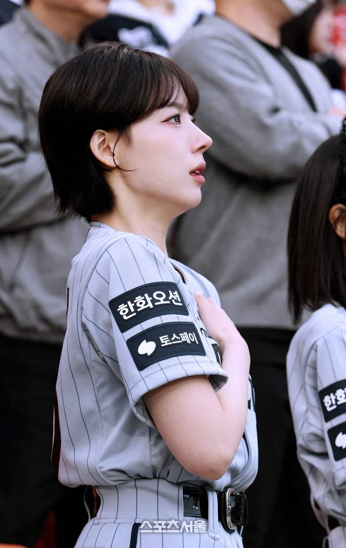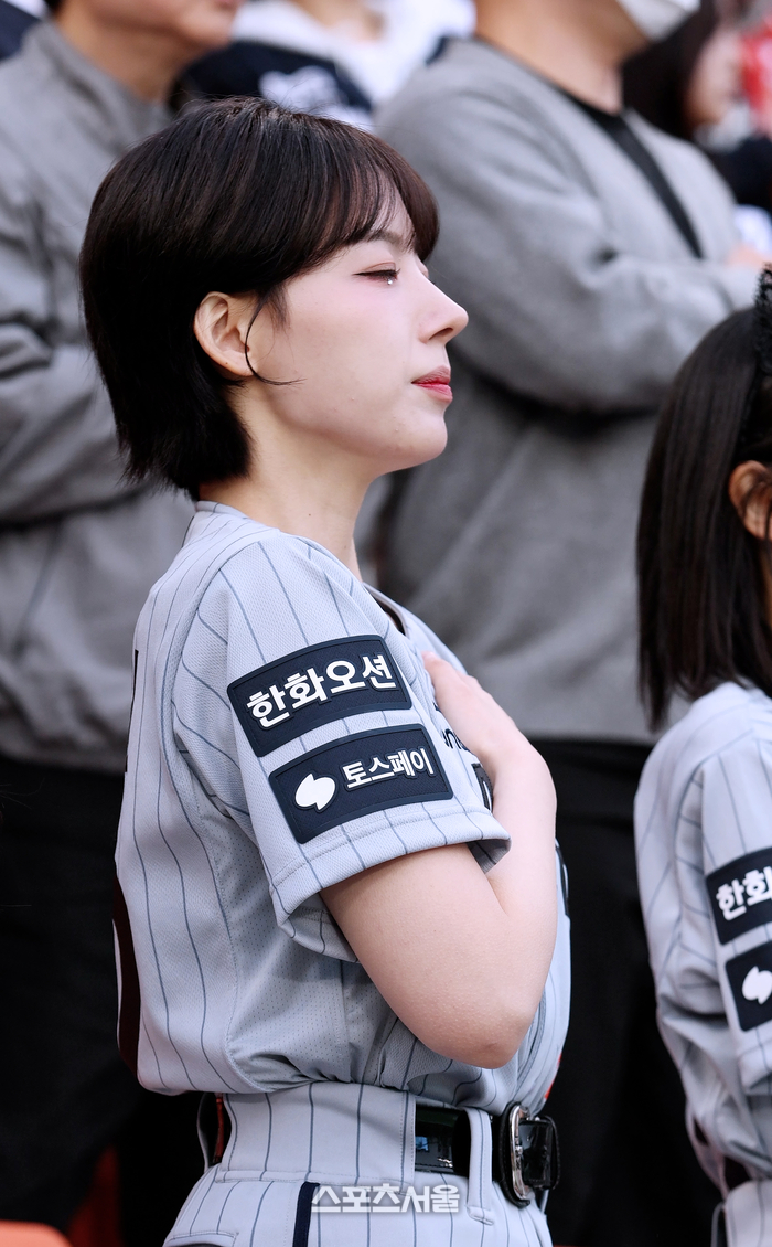 하지원 치어리더, 기침 참아가며 꼿꼿한 애국가 예절!