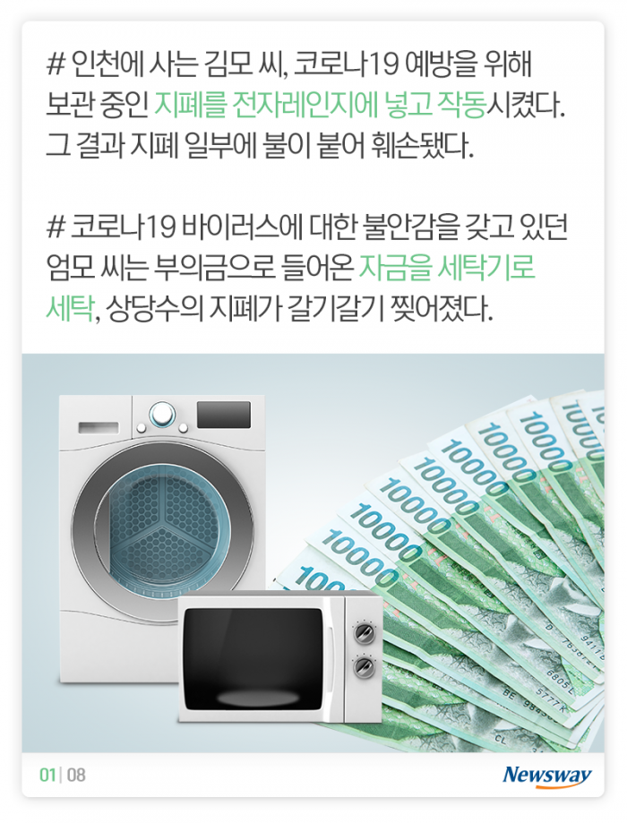 [카드뉴스]바이러스 씻는다고 세탁기에 돈을 돌렸다