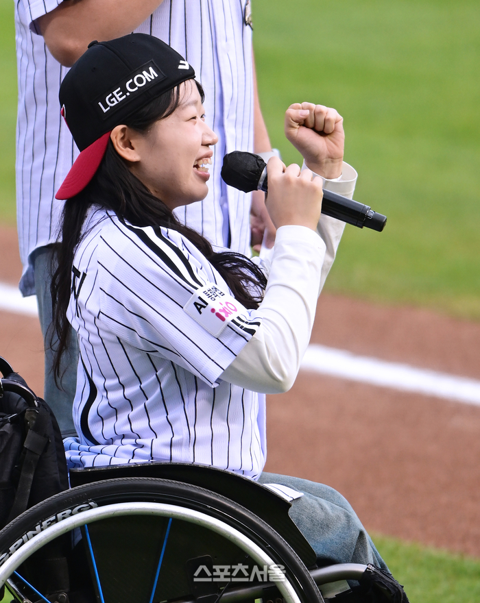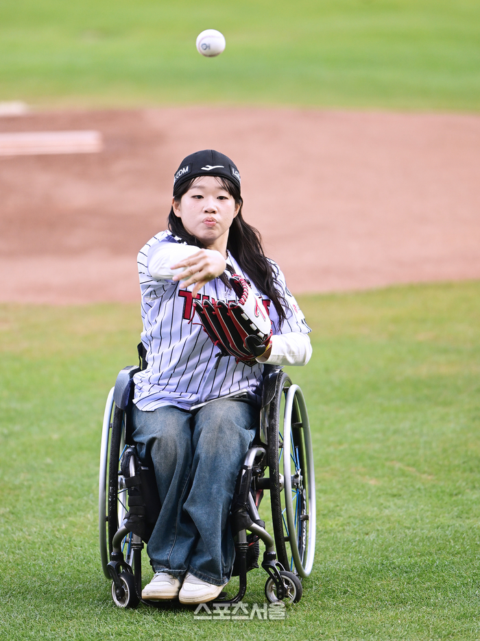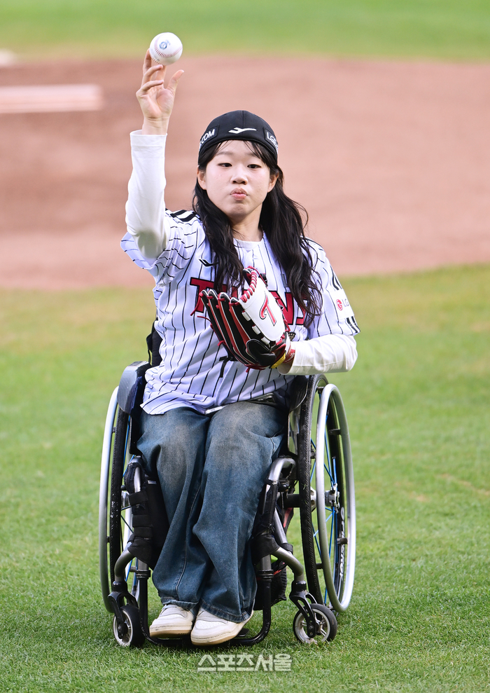 ‘밀라노 동계패럴림픽 영웅’ 김윤지, LG 승리 기원 멋진 시구!...금2 은3, 단일대회 최다 메달 획득 주인공