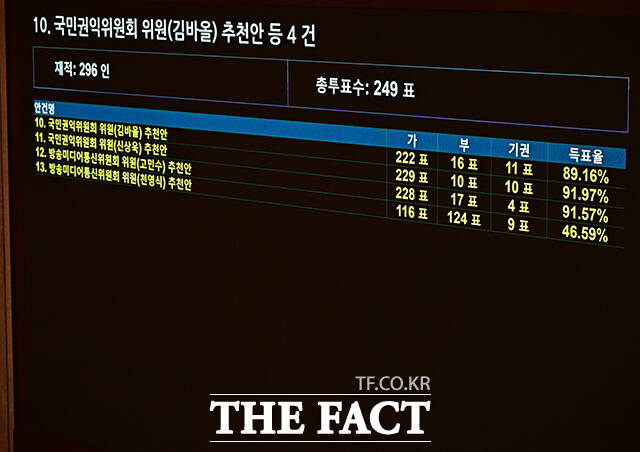 '국힘 추천' 방미통위 위원 천영식 본회의서 부결…찬성 116표, 반대 124표 [TF사진관]