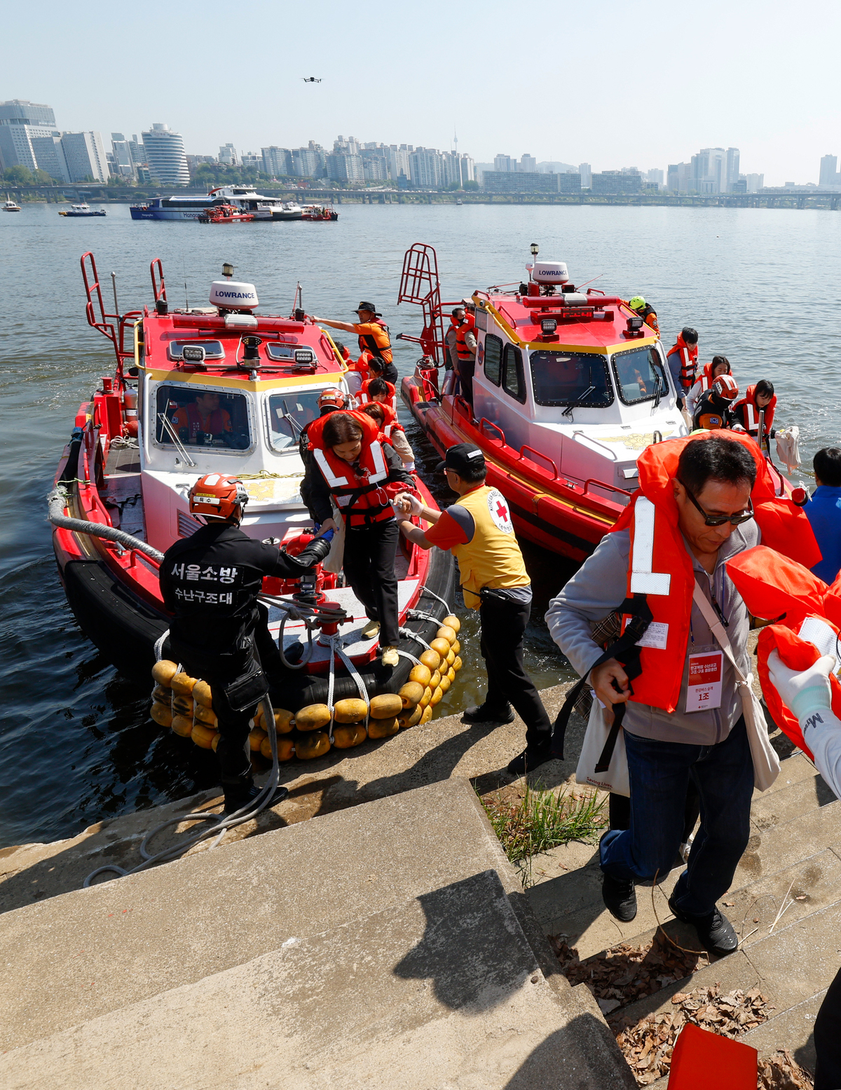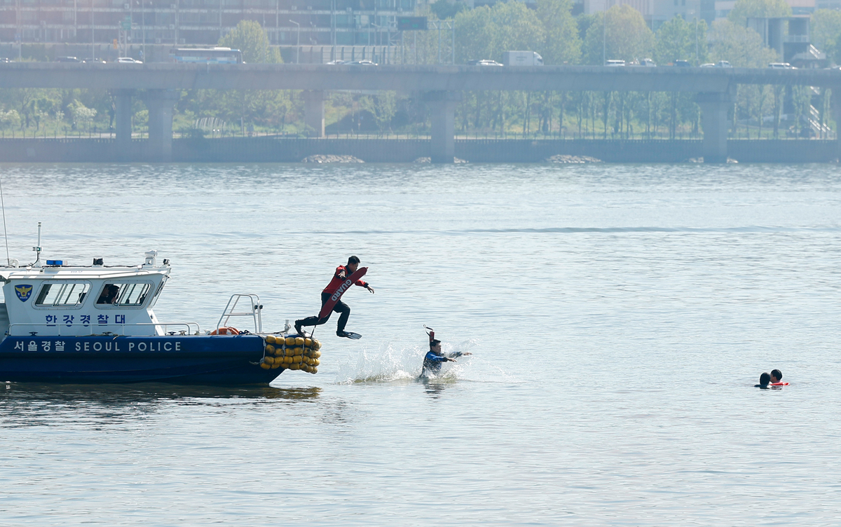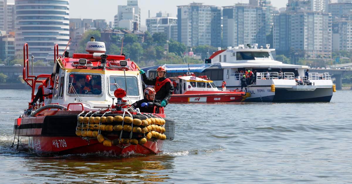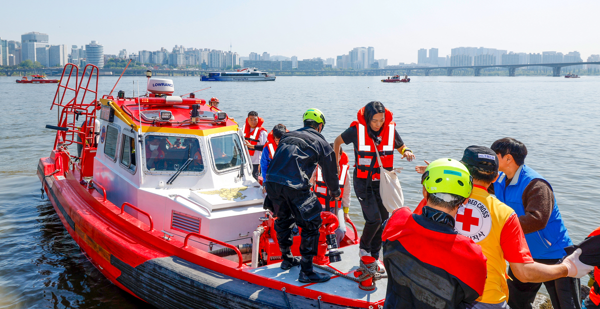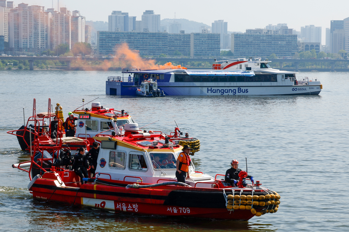 구명조끼 입고 튀어!…한강버스 수난사고 훈련 [한강로사진관]